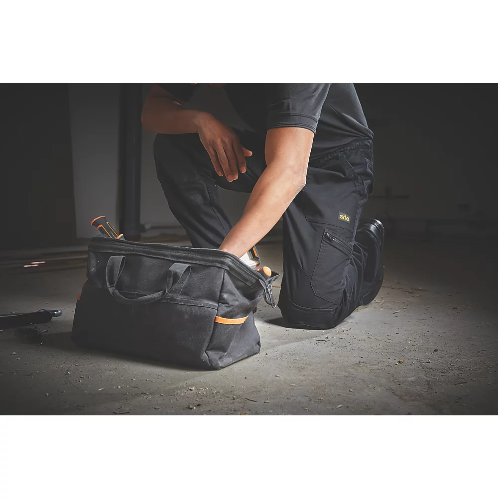 - 2 poches avant ouvertes, 1 poche cargo zippée, 2 poches de genouillère avec ouverture par le haut, 2 poches arrière et 2 poches mètre